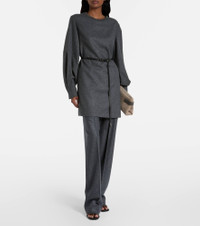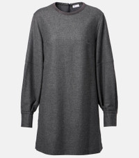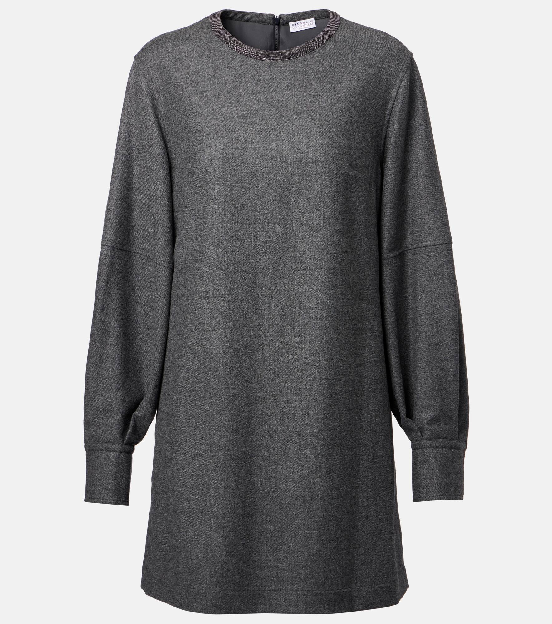 Brunello Cucinelli elevates everyday elegance with this refined minidress. Made from a blend of wool and cashmere, this design features a straight silhouette with voluminous balloon sleeves. Product Details - Material: 95% wool, 5% cashmere - Care instructions: dry clean - Made in Italy - Designer color name: Mid Grey - Item color: gray - Material II: 74% acetate, 26% silk - Details: 100% brass - Contains non-textile parts of animal origin - Cuff: buttoned - Closure: zipped back - Fully lined - Item number: P01083513 Size & Fit - True to size - Dropped shoulders - Straight fit - Non-stretchy fabric - The model seen in the picture is 178cm-5'10", cup size %cupsize%, and wearing a size XS