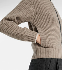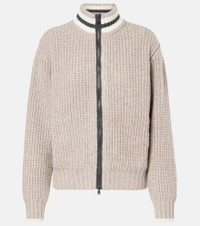 Cashmere Feather yarn English rib knit cardigan with shiny trims