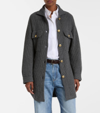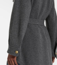 Virgin wool, cashmere and silk English rib belted cardigan with metal buttons