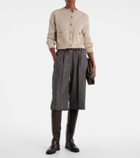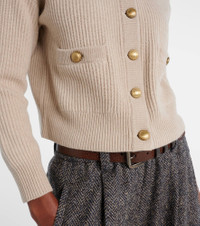 Virgin wool, cashmere and silk English rib cardigan with metal buttons
