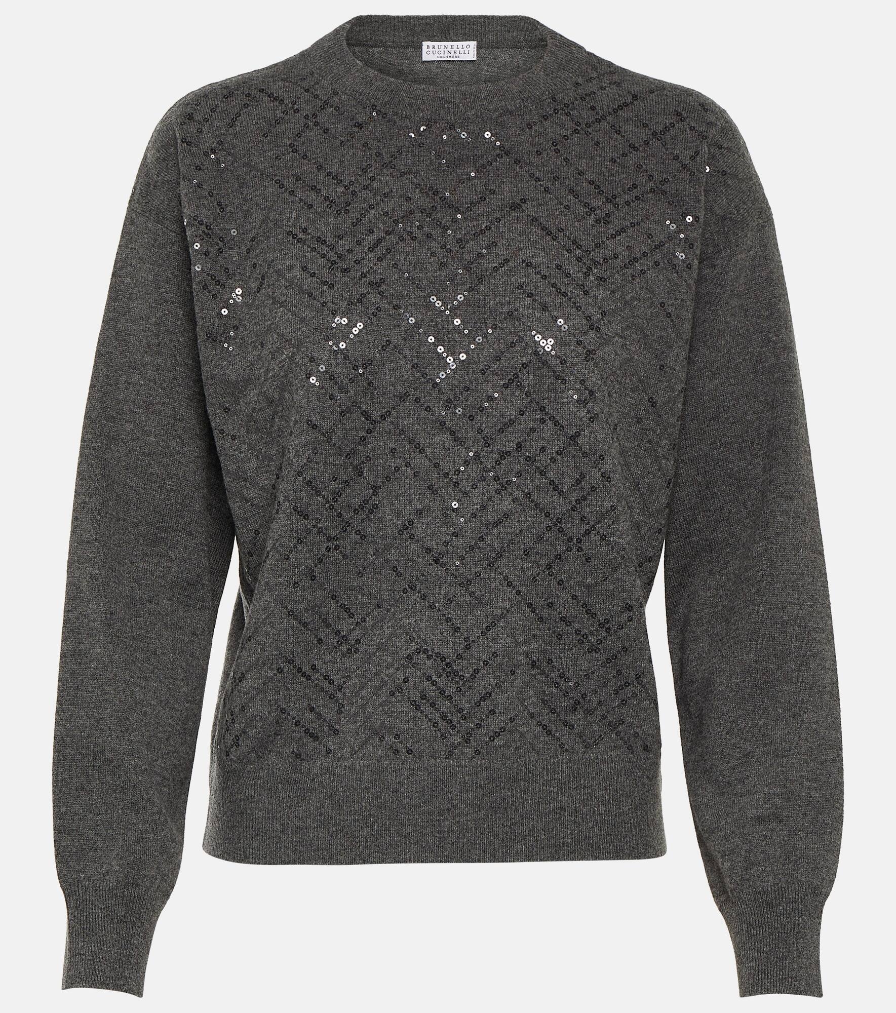 Virgin wool, cashmere and silk sweater with dazzling embroidery