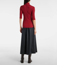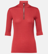 Ribbed wool jersey turtleneck t-shirt with precious half zip