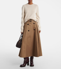 Founded in 1856, Burberry has built a reputation as a British heritage brand with unparalleled craftsmanship and groundbreaking innovation. This midi skirt is crafted from cotton and features a detachable belt and a buttoned front. Product Details - Material: 100% cotton - Care instructions: dry clean - Made in Albania - Designer color name: Clay Brown - Item color: brown - Details: 100% water-buffalo horn - Contains non-textile parts of animal origin - Closure: wrap-front, button fastening - Belt loops - Detachable belt - Pockets: welt pockets - Item number: P01101715 Size & Fit - True to size - Adjustable at the waist - Non-stretchy fabric - High-waisted - The model seen in the picture is 178cm-5'10" and wearing a size UK 6