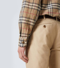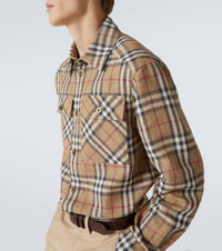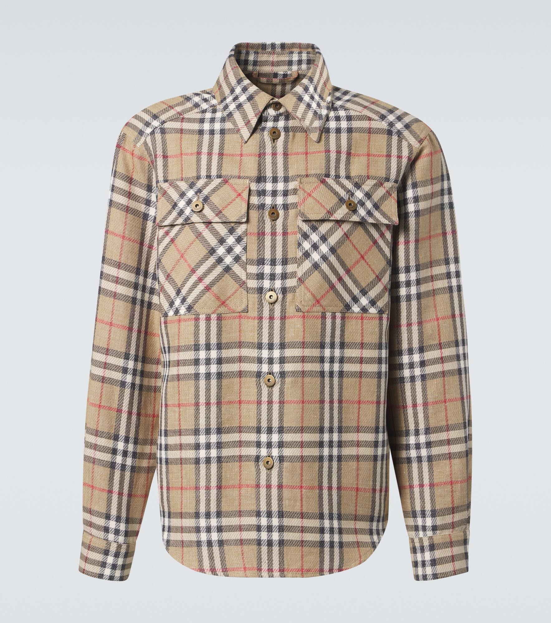 Crafted from soft cotton and linen, this shirt is featured in Burberry's iconic Check print. Its long-sleeved silhouette is complemented by buttoned chest pockets and a pointed collar for an effortlessly sophisticated look. Product Details - Material: 66% cotton, 34% linen - Care instructions: dry clean - Made in Tunisia - Designer color name: Nut Ip Check - Item color: brown - Closure: buttoned front - Pockets: flap chest pockets, buttoned pockets - Item number: P01032038 Size & Fit - True to size - With pleats in the back - Classic fit - Non-stretchy fabric - Falls below the hip - The model in the picture is 185cm-6'1" and wearing a size L