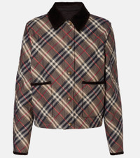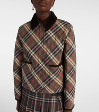 Corduroy-trimmed quilted checked cotton jacket Multi