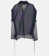 Add a modern touch to your collection with this shirt from Burberry. Made from ultra-soft silk to a slightly oversized silhouette, the semi-sheer design features a Burberry Check pattern and choker-inspired detailing. Product Details - Material: 100% silk - Care instructions: dry clean - Made in Italy - Designer color name: Royal Ip Pattern - Closure: button fastening - Contains non-textile parts of animal origin - Item number: P00859656 Size & Fit - True to size - Semi-sheer - Oversized - Lightweight material - Falls below the hip - The model seen in the picture is 178cm-5'10" and wearing a size UK 6