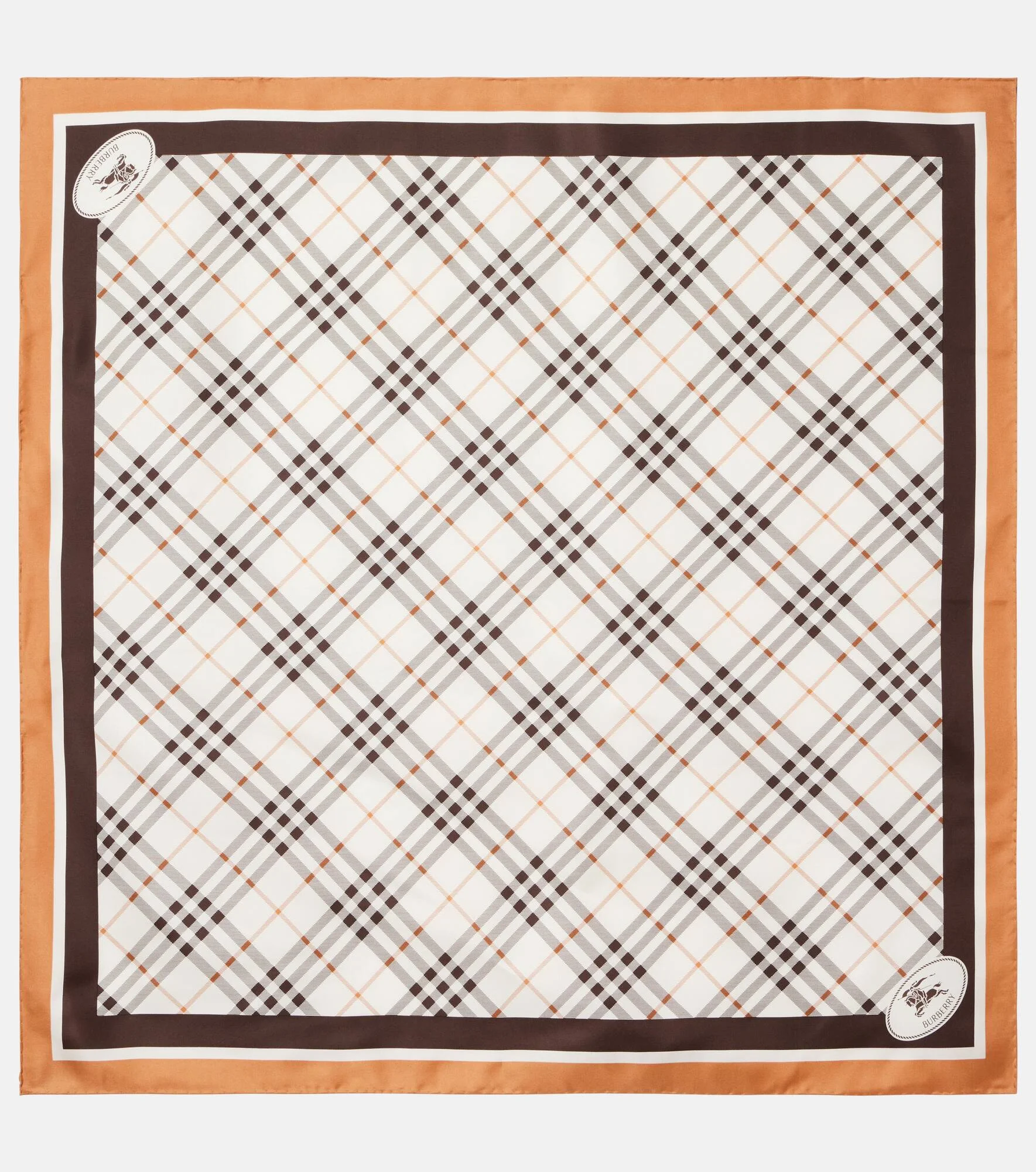 Now a Burberry signature, the Burberry Check pattern was originally used as trench coat lining in the 1920s. Made from silk twill, this scarf boasts the iconic motif and two Equestrian Knight Design logos. Product Details - Material: 100% silk - Care instructions: dry clean - Made in Italy - Color: brown - Designer color name: Pebble White - Item color: multicolor - Item number: P01126634 Size & Fit - Length 90cm-35.5" - Width 90cm-35.5"