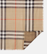 This scarf from Burberry is crafted in Italy from soft wool and silk. The design showcases the house's signature Burberry Check print for a signature touch. Product Details - Material: 52% wool, 48% silk - Care instructions: dry clean - Made in Italy - Designer color name: Beige - Item color: beige, multicolor - Item number: P01117054 Size & Fit - Length 200cm-78.5" - Width 90cm-35.5"