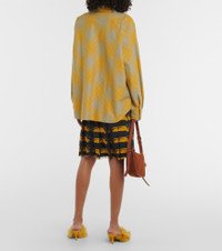 Founded in 1856, Burberry has built a reputation as a British heritage brand with unparalleled craftsmanship and groundbreaking innovation. This cotton shirt comes in a yellow check print and a relaxed fit. Product Details - Material: 100% cotton - Care instructions: dry clean - Made in Romania - Designer color name: Hunter Ip Check - Closure: buttoned front - Buttoned cuffs - Item number: P00859476 Size & Fit - Fits large to size - we recommend trying one size smaller - Dropped shoulders - Designed for a loose fit - Mid-weight material - Non-stretchy fabric - Falls below the hip - The model seen in the picture is 178cm-5'10" and wearing a size UK 4