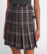 Burberry has built a reputation as a British heritage brand with unparalleled craftsmanship and groundbreaking innovation. Crafted from wool, this miniskirt features a checked pattern, wrapped front, and buckle fastenings at the front. Product Details - Material: 100% wool - Care instructions: dry clean - Made in Poland - Designer color name: Fig/Bk Amethyst Ip - Item color: blue, brown, beige - Trim: 100% calf leather - Details: 100% water-buffalo horn - Contains non-textile parts of animal origin - Hardware color: antique silver - Closure: wrap-front, buckle fastening - Unlined - Item number: P01067139 Size & Fit - True to size - Non-stretchy fabric - The model seen in the picture is 178cm-5'10" and wearing a size UK 6