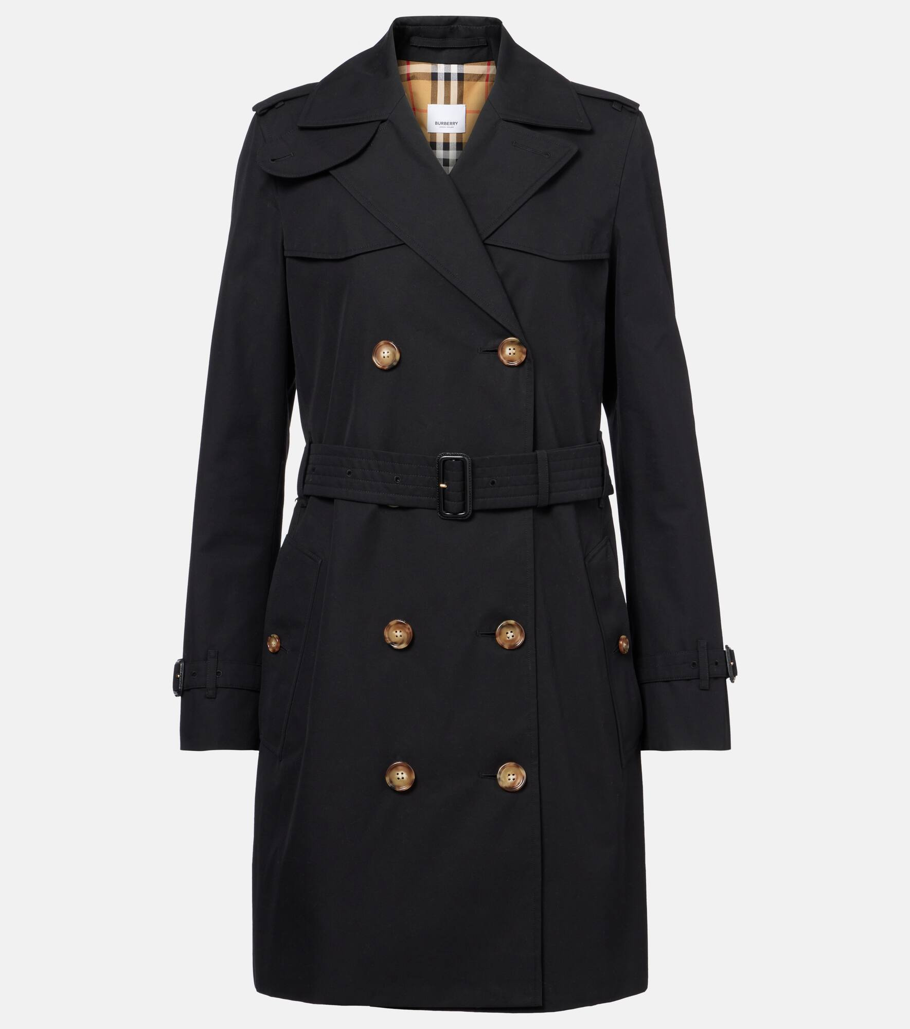 Turn to Burberry for heritage-infused styles such as this black coat. Crafted in the UK from cotton gabardine, this double-breasted design is lined with the label's signature Vintage Check print, and is cinched at the waist with a matching leather-trimmed belt. Layer yours over everyday ensembles for a classic touch. Product Details - Lining: 100% cotton, fully lined - Care instructions: dry clean - Material: 100% cotton - Pockets: buttoned pockets - Sleeve lining: 100% viscose - Designer color name: Black - Cuff tab - Detachable belt, Belt loops - Made in the UK - Closure: double-breasted buttoned front - Item number: P00433493 Size & Fit - True to size - Loose fit, comes with belt - Mid-weight material - The model seen in the picture is 178cm-5'10" and wearing a size UK 6