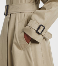 Founded in 1856, Burberry has built a reputation as a British heritage brand with unparalleled craftsmanship and groundbreaking innovation. The trench coat is a classic brand-signature piece, and this belted one is made from pure cotton gabardine. Product Details - Material: 100% cotton - Care instructions: dry clean - Made in the UK - Designer color name: Quill - Item color: beige - Lining: 100% cotton - Sleeve lining: 100% cupro - Contains non-textile parts of animal origin - Collar: classic (Straight point) - Closure: concealed buttoned front - Pockets: buttoned pockets - Attached belt - Vent: single - Item number: P01101703