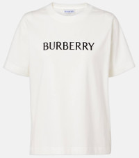 Founded in 1856, Burberry has built a reputation as a British heritage brand with unparalleled craftsmanship and groundbreaking innovation. Even essential pieces like this T-shirt are cut into a thoughtfully classic silhouette. Product Details - Material: 100% cotton - Care instructions: machine wash at 30 degrees - Made in Portugal - Color: white - Designer color name: Chalk - Item color: white - Trim: 97% cotton, 3% elastane - Collar: crewneck - Item number: P01143373 Size & Fit - True to size - Straight fit - Slightly stretchy fabric - Falls to the hip - The model seen in the picture is 178cm-5'10" and wearing a size XS