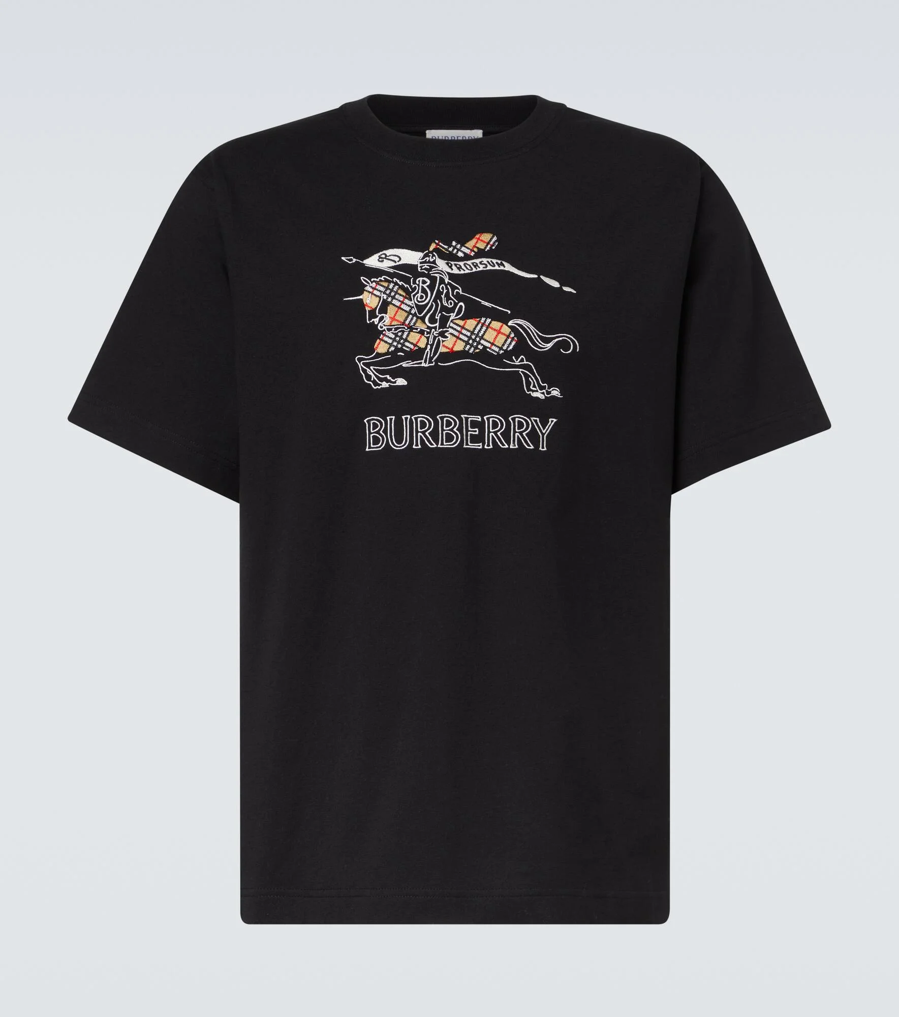 Founded in 1856, Burberry has built a reputation as a British heritage brand with unparalleled craftsmanship and groundbreaking innovation. Crafted from soft cotton jersey, this versatile T-shirt features a classic design. Product Details - Material: 100% cotton - Care instructions: machine wash at 30 degrees - Made in Portugal - Color: black - Designer color name: Black - Item color: black - Trim: 97% cotton, 3% elastane - Embroidery: 100% viscose - Collar: crewneck - Item number: P01141299 Size & Fit - True to size - Straight fit - Slightly stretchy fabric - Falls to the hip - Height of model is 189cm-74.5" and wears a size L