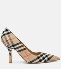 The Dame pumps from Burberry feature the brand's signature Burberry Check pattern all over the canvas uppers. Made in Italy, the pair comes with pointed toes and 90mm stiletto heels. Product Details - Upper: fabric - Lining: leather - Sole: leather insole and sole - Toe shape: pointed toe - Made in Italy - Includes: shoe box, dust bags - Designer color name: Sand Ip Check - Item color: beige - Item number: P01064131 Size & Fit - True to size - Narrow at the toe - European sizes - 9cm-3.5" heel (size EU 38)