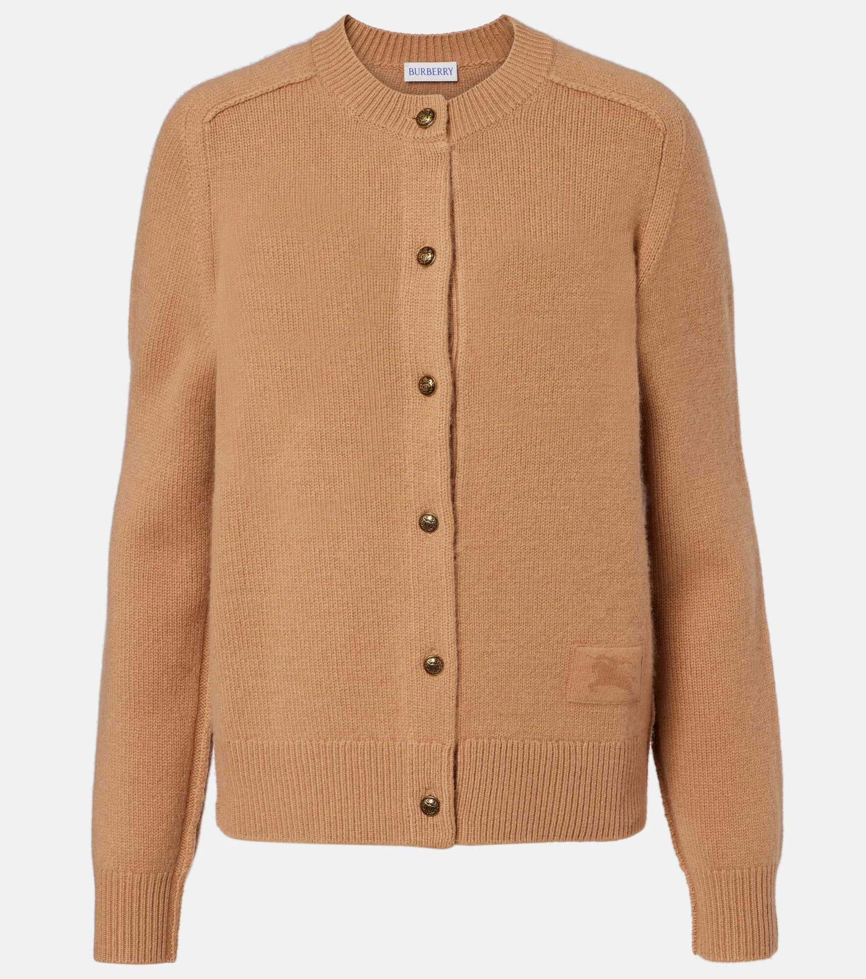 Made from soft cashmere-blend yarns, this classic cardigan is finished with an EKD patch. A symbol of British heritage, Burberry's Equestrian Knight Design signifies honor and the brand's commitment to always move forward. Product Details - Material: 97% cashmere, 2% polyamide, 1% elastane - Care instructions: dry clean - Made in China - Color: beige - Designer color name: Butterscotch - Hardware color: gold - Details: 97% cashmere, 2% polyamide, 1% elastane - Cuff: ribbed - Closure: buttoned front - Hem: ribbed - Item number: P01143363 Size & Fit - True to size - Straight fit - Slightly stretchy fabric - Falls below the hip - The model seen in the picture is 178cm-5'10" and wearing a size XS