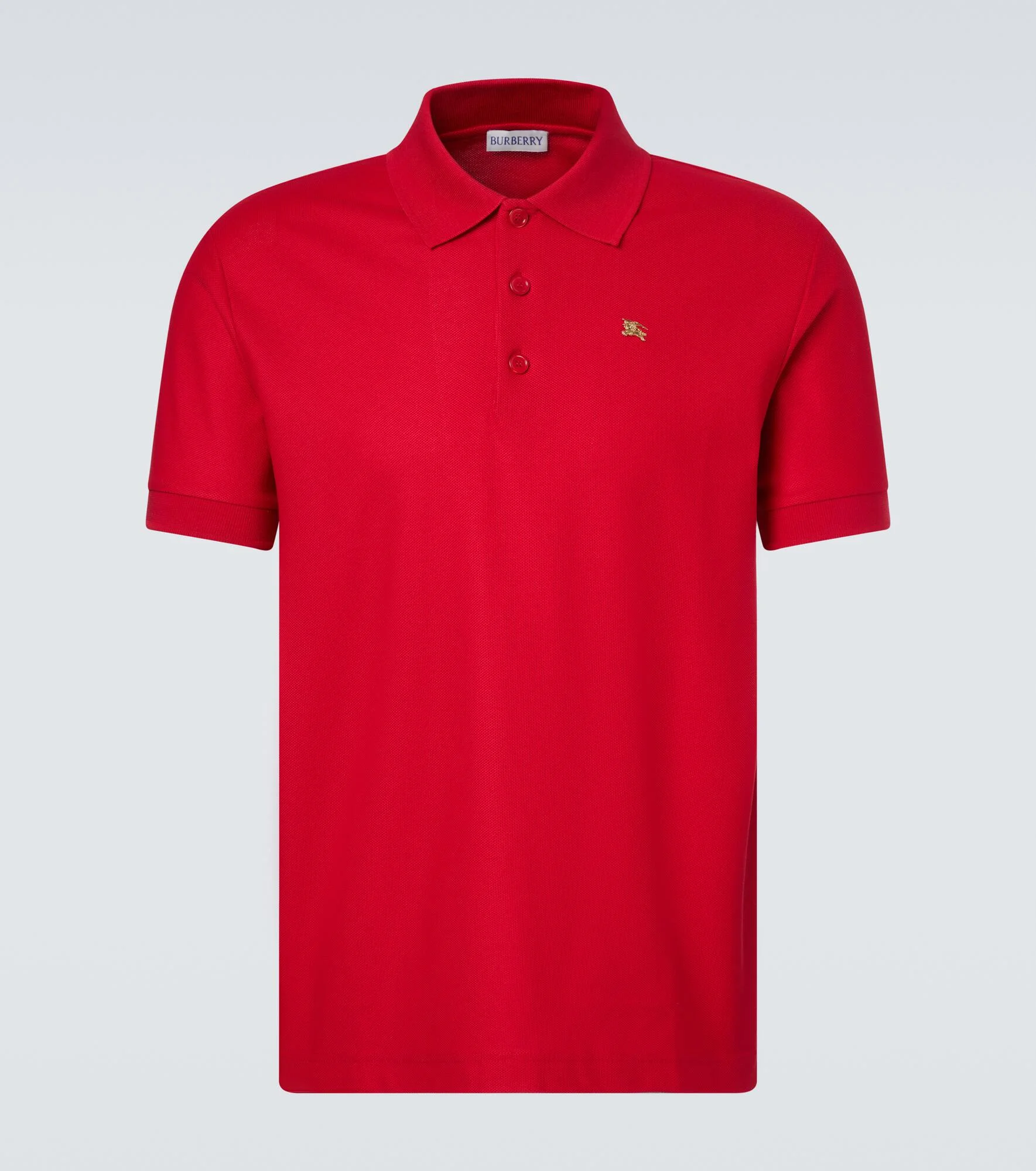 Made from breathable cotton pique, this classic polo shirt is finished with a metal EKD on the chest. A symbol of British heritage, Burberry's Equestrian Knight Design signifies honor and the brand's commitment to always move forward. Product Details - Material: 100% cotton - Care instructions: machine wash at 30 degrees - Made in Portugal - Color: red - Designer color name: Crayon Red - Trim: 97% cotton, 3% elastane - Details: 100% mother-of-pearl - Contains non-textile parts of animal origin - Hardware color: gold - Collar: polo collar - Closure: buttoned placket - Item number: P01141308 Size & Fit - True to size - Straight fit - Slightly stretchy fabric - Falls to the hip - Height of model is 192cm-75.5" and wears a size L