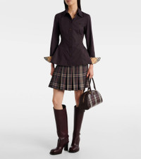 Burberry has built a reputation as a British heritage brand with unparalleled craftsmanship and groundbreaking innovation. The Eliza cotton poplin shirt features a classic point collar, buttoned front, and the iconic Burberry Check on the folded cuffs. Product Details - Material: 100% cotton - Care instructions: dry clean - Made in Thailand - Designer color name: Bark - Item color: purple - Trim: 100% cotton - Details: 100% mother-of-pearl - Collar: classic (Straight point) - Closure: buttoned placket - Cuff: one button - Item number: P01101711 Size & Fit - True to size - Cinched waist - Non-stretchy fabric - Falls below the hip - The model seen in the picture is 178cm-5'10" and wearing a size UK 6
