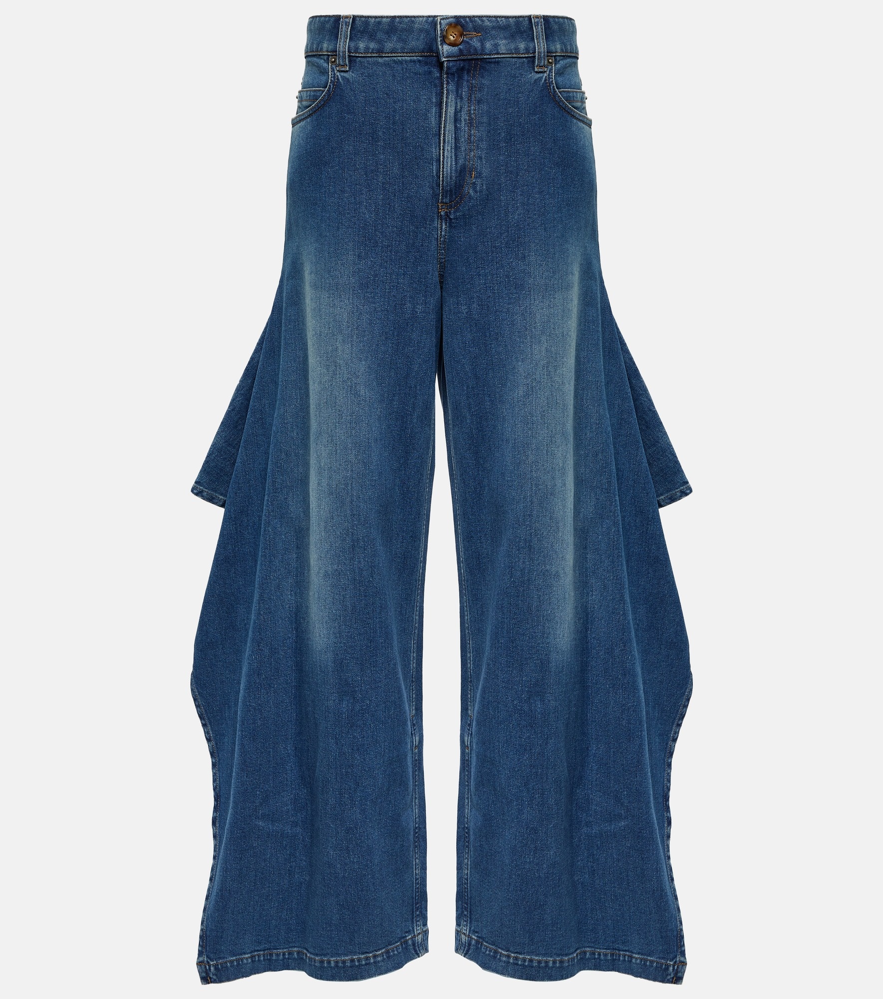 Refresh your denim edit with these Burberry jeans. Made from cotton, this statement piece features exaggerated side slits and the brand's lettering embroidered on the back. Product Details - Pockets: five pockets - Belt loops - Made in Italy - Designer color name: Blue - Care instructions: machine wash at 30 degrees - Closure: zipper fly, button fastening - Material: 98% cotton, 2% elastane - Item number: P00797308 Size & Fit - Fits large to size - we recommend trying one size smaller - Mid-weight material - Non-stretchy fabric - Wide-leg - High-rise - The model seen in the picture is 178cm-5'10" and wearing a size 25