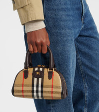 Now a house signature, the Burberry Check pattern was originally used as trench coat lining in the 1920s. It appears on the surface of the Highlands Mini tote bag, accented by leather trims. Product Details - Material: fabric - Lining: fabric - Made in Italy - Designer color name: Sand - Item color: beige, brown - Hardware color: gold - Trim: leather - Top handles, Detachable, adjustable shoulder strap - Closure: two-way zipped top - Internal details: single compartment - Includes: dust bag - Item number: P01100315 Size & Fit - Height 11,5cm-4.5" - Width 20,5cm-8" - Depth 8,5cm-3.5" - Length of handles 29cm-11.5" - Adjustable shoulder strap - Min. length shoulder strap 107cm-42" - Max. length shoulder strap 133cm-52.5"