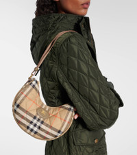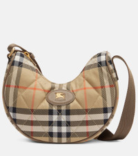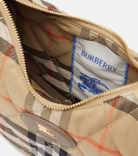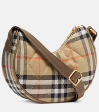 Inspired by country pursuits, this quilted crossbody bag from Burberry features the iconic Burberry Check, leather trims, and the archival Knight stamp. An adjustable webbing strap allows shoulder or crossbody wear. Product Details - Material: polyamide, polyurethane - Lining: fabric - Made in Moldova - Designer color name: Sand - Item color: beige - Trim: leather - Adjustable shoulder strap - Closure: zipped top - Hardware color: gold - Item number: P01068307 Size & Fit - Height 12/18cm-4.5/7" - Width 22cm-8.5" - Depth 7.5cm-3" - Adjustable shoulder strap - Max. length shoulder strap 114cm-45"