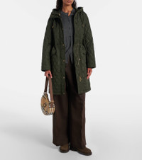 Leather-trimmed quilted checked twill shoulder bag Sand