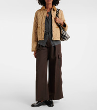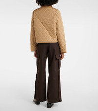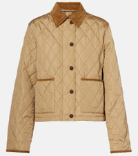 Founded in 1856, Burberry has built a reputation as a British heritage brand with unparalleled craftsmanship and groundbreaking innovation. The Oldham jacket features a quilted style with a two-way zipped front and patch pockets. Product Details - Material: 100% polyamide - Care instructions: dry clean - Made in Thailand - Designer color name: Flax/Sand IP Check - Item color: beige - Filling: 100% polyester - Lining: 100% cotton - Details: 100% cotton - Closure: two-way zipped front with snap-button fastenings - Pockets: patch pockets, internal pocket - Item number: P01067124 Size & Fit - True to size - Designed for a loose fit - Non-stretchy fabric - Falls to the hip - The model seen in the picture is 178cm-5'10" and wearing a size XS