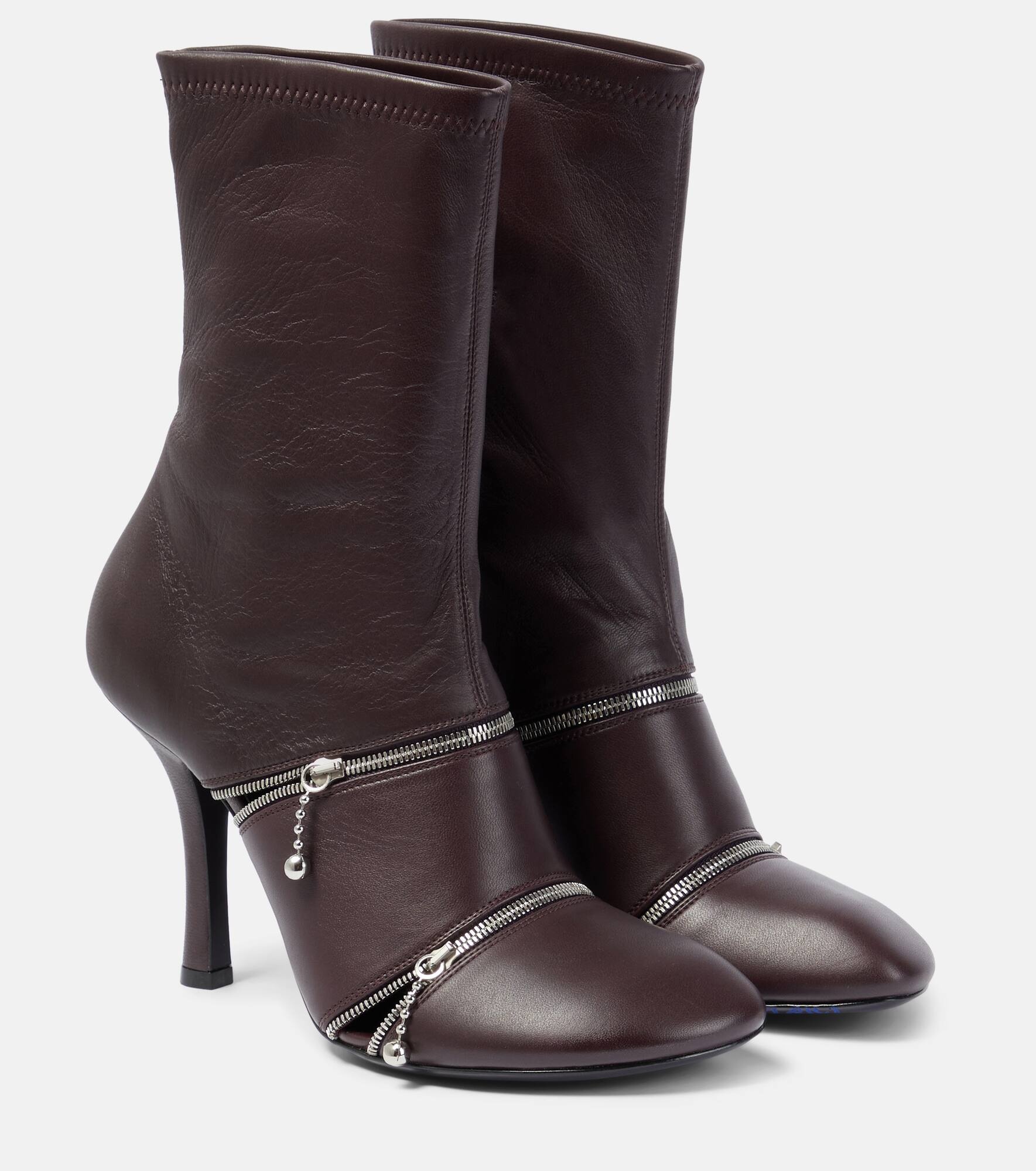 Peep leather ankle boots