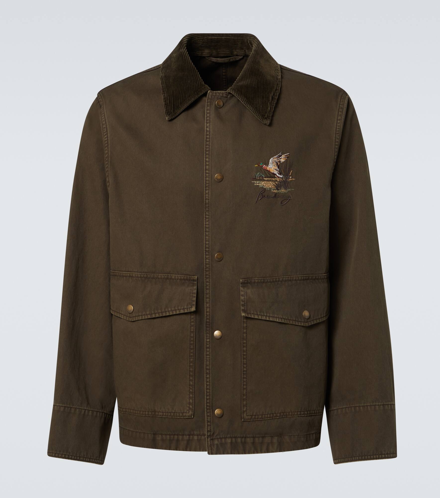 Product Details - Material: 100% cotton - Care instructions: dry clean - Made in Italy - Designer color name: Juniper - Closure: snap-buttoned front - Pockets: flap pockets - Trim: 100% cotton - Cuff: one button - Includes: garment bag - Relaxed fit - Item number: P01014637 Size & Fit - True to size - Designed for a loose fit - Non-stretchy fabric - Falls to the hip - The model in the picture is 185cm-6'1" and wearing a size L