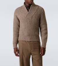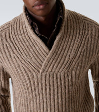 Founded in 1856, Burberry has built a reputation as a British heritage brand with unparalleled craftsmanship and groundbreaking innovation. This sweater is expertly ribbed-knit from pure wool with a shawl collar and tonal logo detailing at the hem. Product Details - Material: 100% wool - Care instructions: dry clean - Made in Italy - Designer color name: Beige Melange - Item color: beige - Trim: 98% wool, 1% polyamide, 1% elastane - Collar: shawl neck - Cuff: ribbed - Hem: ribbed - Item number: P01096978 Size & Fit - True to size - Straight fit - Slightly stretchy fabric - Falls to the hip - Height of model is 189cm-74.5" and wears a size L