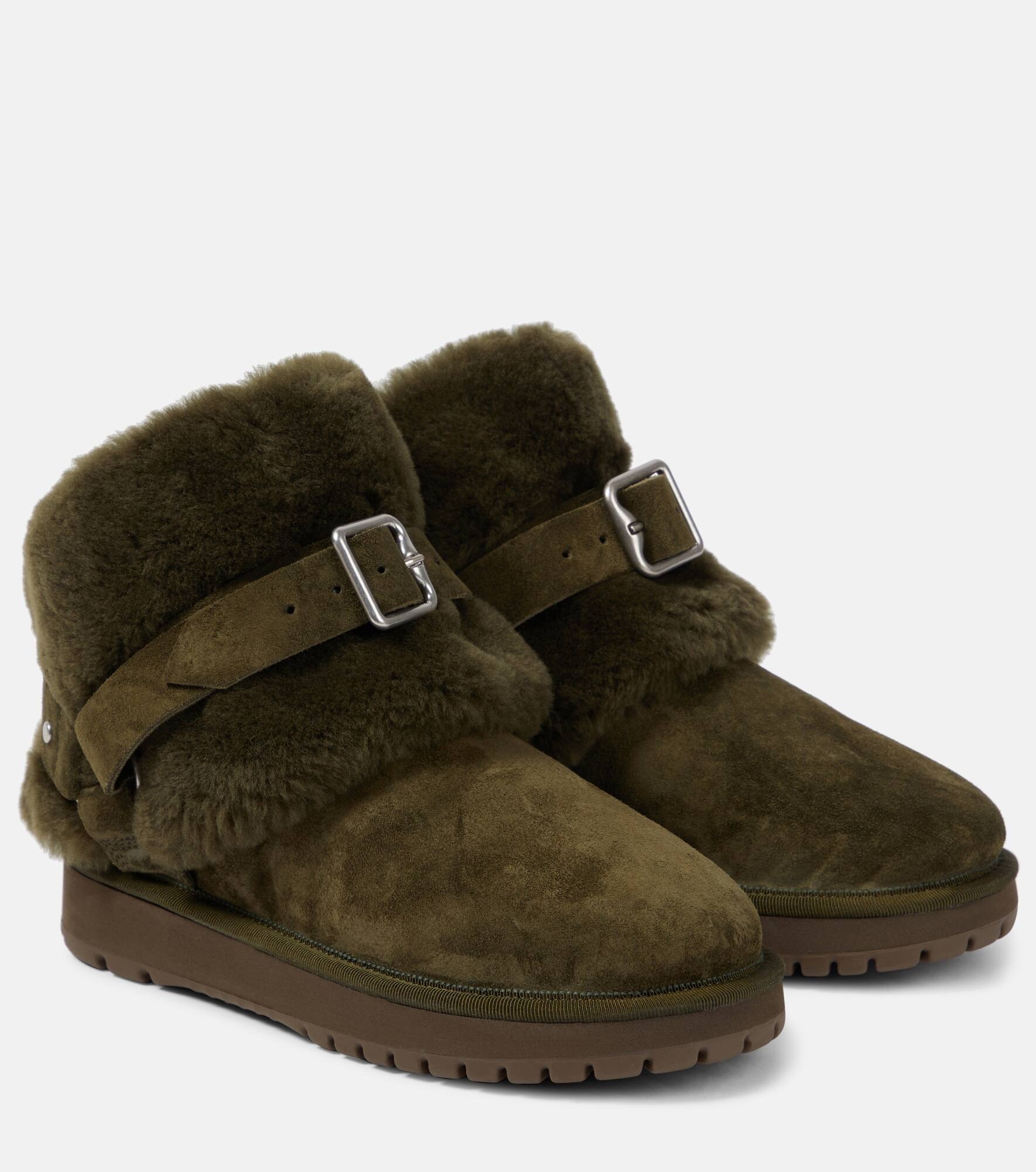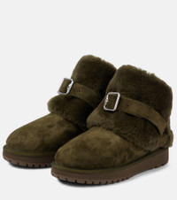 Shearling-trimmed suede ankle boots