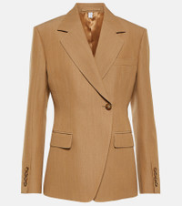 Burberry's modern take on classic tailoring is showcased by this single-breasted blazer. Made from durable wool, the style features notched lapels, button fastening, two flap pockets and rear vent detailing. Product Details - Lining: fully lined, 100% cupro - Made in Italy - Pockets: flap pockets, internal pockets - Designer color name: Camel Melange - Material: 100% wool - Care instructions: specialist clean - Item number: P00827451 Size & Fit - True to size - Shoulder pad inserts - Cinched waist - Mid-weight material - Falls below the hip - The model seen in the picture is 178cm-5'10" and wearing a size UK 6