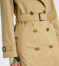 This Waterloo Burberry trench coat is crafted in England from water-repellent cotton gabardine. The design is lined with the Burberry Check, the brand's signature since the 20s, and it features a detachable belt. Product Details - Material: 100% cotton - Care instructions: specialist clean - Made in the UK - Designer color name: Hamper - Item color: beige - Lining: 100% cotton - Sleeve lining: 100% viscose - Contains non-textile parts of animal origin - Detachable belt - Item number: P01067123 Size & Fit - Fits small to size - we recommend trying one size larger - Loose fit, comes with belt - Non-stretchy fabric - The model seen in the picture is 178cm-5'10" and wearing a size UK 8