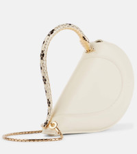 Bvlgari's Serpenti Cuore 1968 tote bag is expertly crafted from matelasse leather into a distinctive heart shape with soft padded effect. The snake body-shaped chain is detachable, while the serpentine top handle draws inspiration from the brand's jewelry archives. Product Details - Material: calf leather - Lining: leather (nappa) - Made in Italy - Designer color name: Perla White - Internal details: single compartment, card slot - Top handle, Detachable chain shoulder strap - Closure: snap-buttoned fastening - Hardware color: gold - Item number: P01031998 Size & Fit - Height 13cm-5" - Max. width 19cm-7.5" - Depth 4,5cm-2" - Chain length 110cm-43.5" - Length of handles 27cm-10.5"