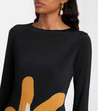 Cala de la Cruz's designs offer a glimpse into paradise. Shaped with lightly fluted sleeves, the Maisha minidress is crafted from soft jersey with a striking floral motif. Product Details - Material: 90% viscose, 10% elastane - Care instructions: dry clean - Made in Colombia - Color: black - Designer color name: Cattleyabw - Lining: 78% polyamide, 22% elastane - Closure: buttoned back - Item number: P01122129 Size & Fit - True to size - Fitted - Stretchy fabric - The model seen in the picture is 178cm-5'10" and wearing a size XS