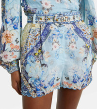 Belted floral linen shorts