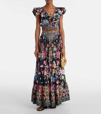 Maximalists adore Camilla's unique aesthetic of hand-drawn prints and precisely placed crystal embellishments. Handcrafted from organic cotton poplin, this maxi skirt features tiered panels and an intricate allover print. Product Details - Material: 100% cotton (organic) - Care instructions: dry clean - Made in India - Designer color name: Midnight In Monserrate - Item color: multicolor - Item number: P01051450 Size & Fit - True to size - Elasticated waist - Non-stretchy fabric - The model seen in the picture is 178cm-5'10" and wearing a size XS