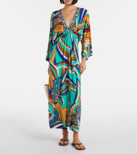 Draped printed jersey maxi dress