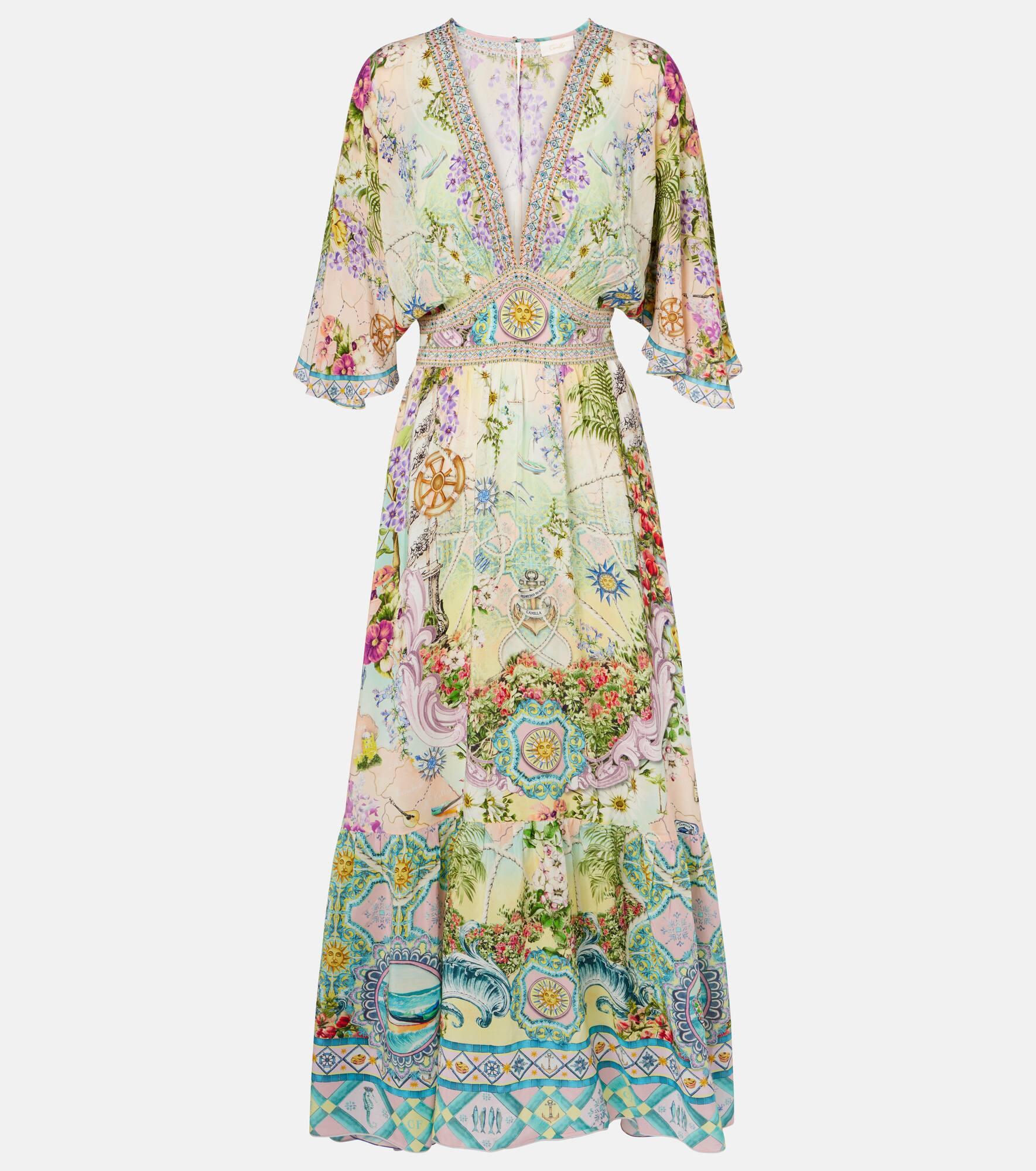 Crafted from silk, this maxi dress by Camilla features pastel coastal-inspired prints and precisely placed crystal embellishments. This piece features an elasticated waistband, flared skirt, buttoned back closure and slit pockets. Product Details - Material: 100% silk - Care instructions: dry clean - Made in India - Designer color name: Just Coasting - Item color: multicolor - Details: 100% crystals - Elasticated waistband - Closure: buttoned back - Pockets: side slit pockets - Item number: P01075535 Size & Fit - True to size - Loose fit, elasticated waist - Non-stretchy fabric - The model seen in the picture is 178cm-5'10" and wearing a size XS