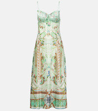 Maximalists adore Camilla's unique aesthetic of hand-drawn prints and precisely placed crystal embellishments. This midi dress is crafted from pure silk and features a gathered bodice along with a tie-detail at the front. Product Details - Material: 100% silk - Care instructions: dry clean - Made in China - Designer color name: Pestana Panorama - Item color: green, multicolor - Item number: P01041701 Size & Fit - True to size - Low back - Cinched waist - Non-stretchy fabric - The model seen in the picture is 178cm-5'10" and wearing a size XS
