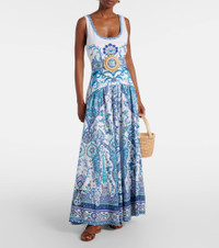 Handcrafted from soft cotton jersey, Camilla’s Isnik Lullaby maxi dress showcases the brand’s signature maximalist print. Designed for warm-weather soirees, this design features tank straps and a flattering attached belt. Product Details - Material: 100% cotton (organic) - Care instructions: dry clean - Made in India - Designer color name: Isnik Lullaby - Item color: blue, white - Material II: 95% pima cotton, 5% elastane - Attached belt - Item number: P01093335 Size & Fit - Fits large to size - we recommend trying one size smaller - Low back - Fitted bodice, loose skirt - Partly stretchy fabric - The model seen in the picture is 178cm-5'10" and wearing a size XXS