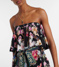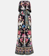 Strapless embellished printed silk crepe de chine jumpsuit