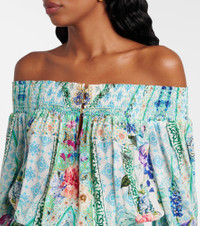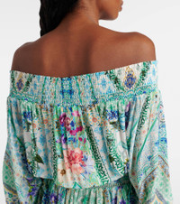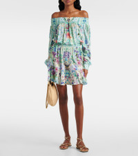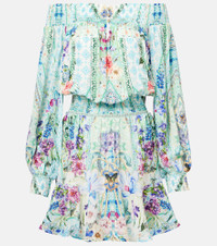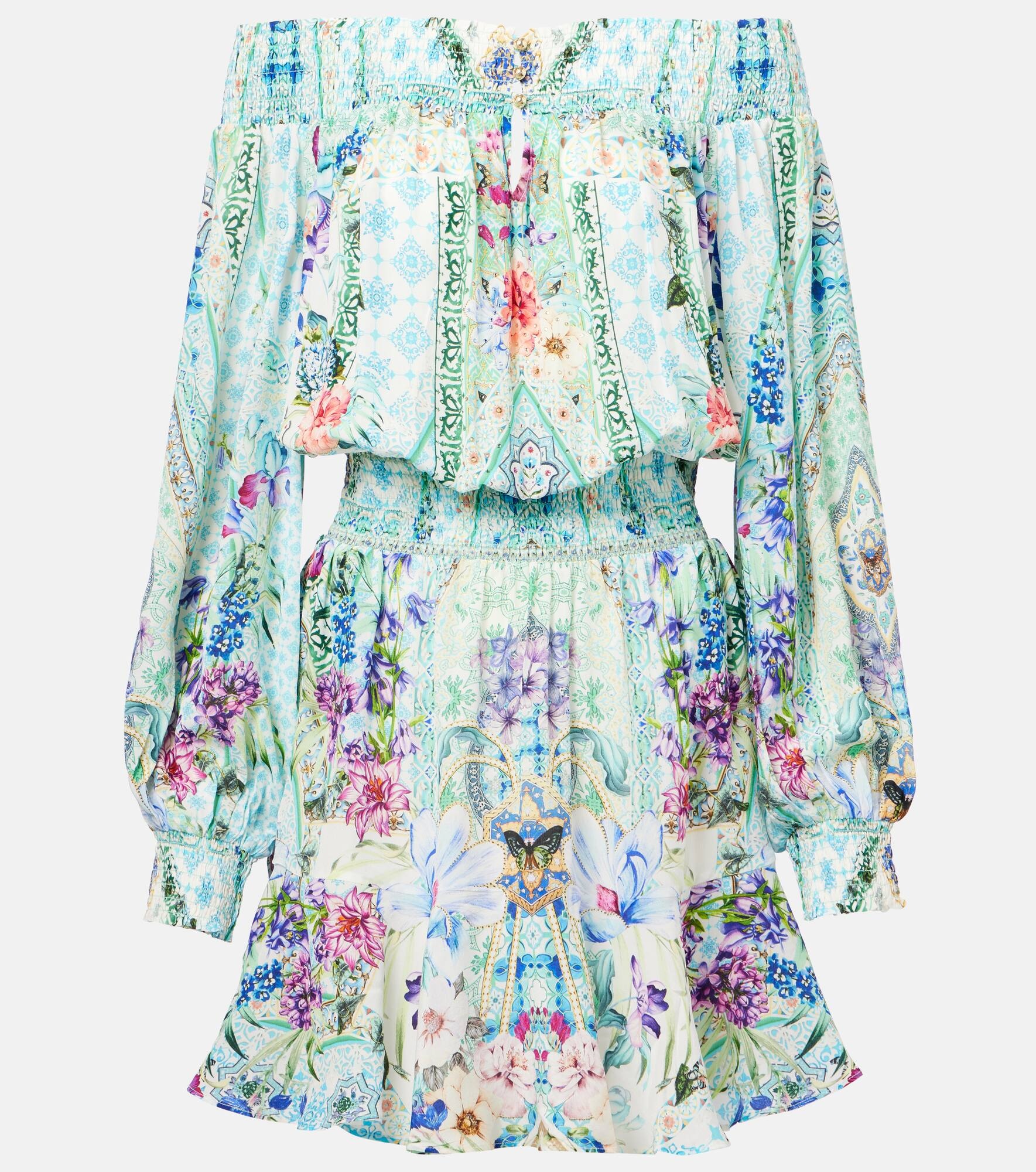 Maximalists adore Camilla's unique aesthetic of hand-drawn prints and precisely placed crystal embellishments. Crafted from pure silk, this minidress features blouson sleeves and a shirred neckline that drops down to an adjustable waistband to cinch the waist. Product Details - Material: 100% silk - Care instructions: dry clean - Made in India - Designer color name: Sunrise In Sintra - Item color: blue, multicolor - Item number: P01051374 Size & Fit - True to size - Off-the-shoulder - Loose fit, elasticated waist - Non-stretchy fabric - The model seen in the picture is 178cm-5'10" and wearing a size XS