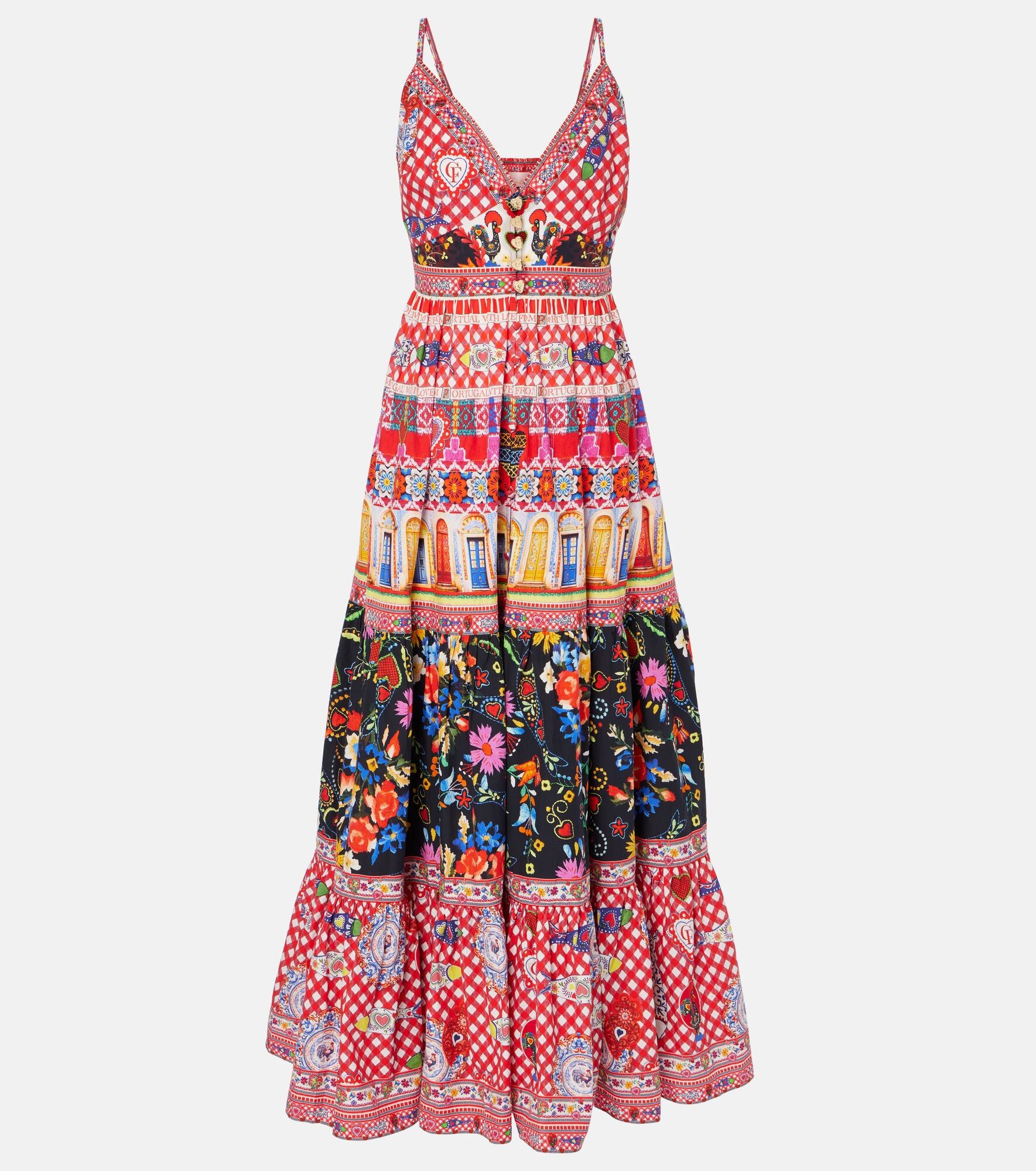 Printed tiered cotton maxi dress