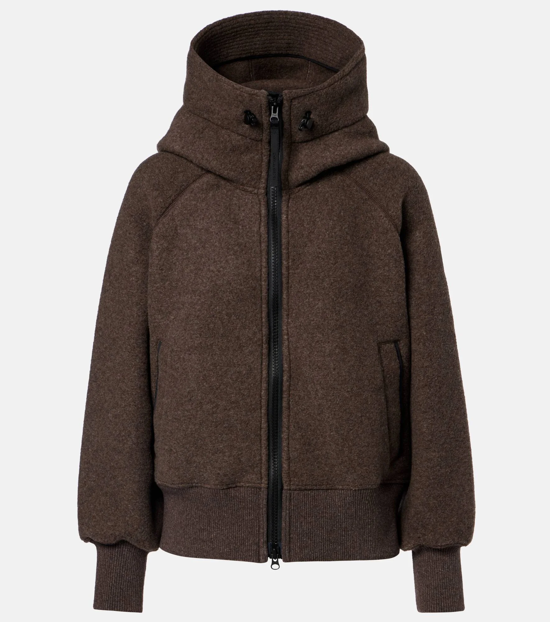 Built for the adventurer, Canada Goose’s Black Label reintroduces iconic styles with elevated details, including the signature black disc. Made from wool-blend fleece, the Chilliwack jacket is characterized by its adjustable hood and ribbed-knit trims. Product Details - Material: 60% wool (recycled), 16% lyocell, 13% polyester, 8% polyamide, 3% other fibers - Care instructions: dry clean - Made in Canada - Color: brown - Designer color name: Terra - Terra - Material II: 66% wool (recycled), 19% lyocell, 10% polyamide, 4% other fibers, 1% elastane - Cuff: ribbed - Pockets: welt pockets - Closure: two-way zipped front - Drawstring hood - Item number: P01148927 Size & Fit - True to size - Designed for a loose fit - Elasticated hem - Slightly stretchy fabric - Falls to the hip - The model seen in the picture is 178cm-5'10" and wearing a size XS