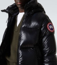 In a recycled lightweight, black ripstop shell, this puffer jacket from Canada Goose is inspired by the Arctic featuring a durable, water and wind resistant finish. With a TEI 4 classification, this hooded jacket endures temperatures between -15 and -25°C. It comes with a high neck, a two-way zipper and interior mesh pockets. Product Details - Care instructions: machine wash at 30 degrees - Lining: fully lined, 100% polyamide - Pockets: internal pockets - Material: 100% polyamide - Elasticated cuffs - Designer color name: Black - Material II: 100% polyamide - Made in Canada - Closure: two-way zipped front - Filling: 90% feathers, 10% down - Drawstring hood - Item number: P00596504 Size & Fit - True to size - Designed for a loose fit - Thick material - Non-stretchy fabric - Falls below the hip - The model in the picture is 185cm-6'1" and wearing a size M