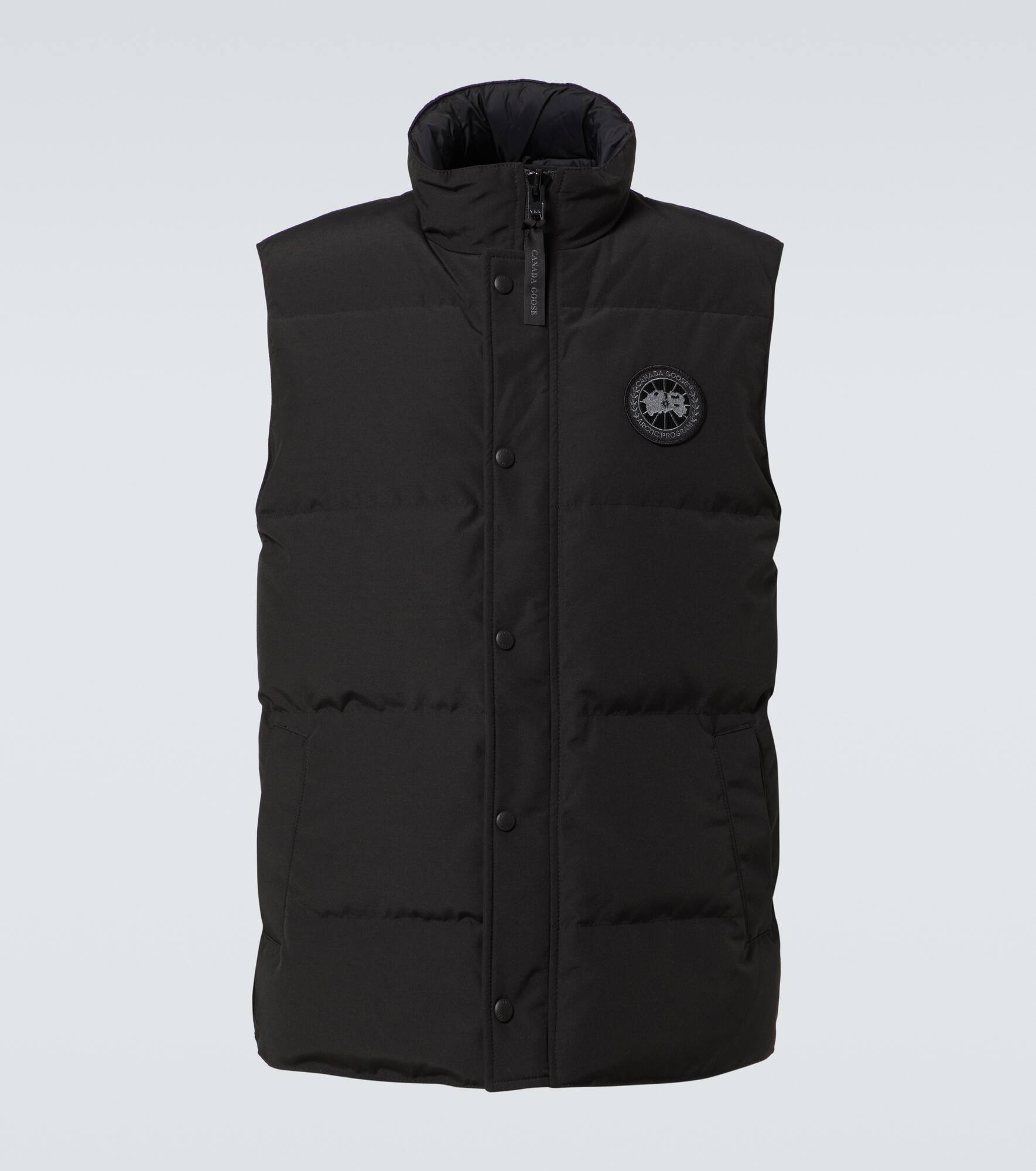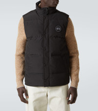 Made in Canada from water-resistant fabric and filled with insulating down, this black Canada Goose vest has multiple pockets and a fleece-lined collar for comfort. Product Details - Made in Canada - Care instructions: dry clean - Pockets: zipped pockets - Closure: two-way zipped front with snap-button fastenings - Material II: 100% polyester - Designer color name: Black - Contains non-textile parts of animal origin - Lining: fully lined, 100% polyamide - Filling: 80% down, 20% feathers - Material: 15% cotton - Item number: P00446899 Size & Fit - True to size - Designed for a loose fit - Thick material - Non-stretchy fabric - Falls to the hip - The model in the picture is 185cm-6'1" and wearing a size M