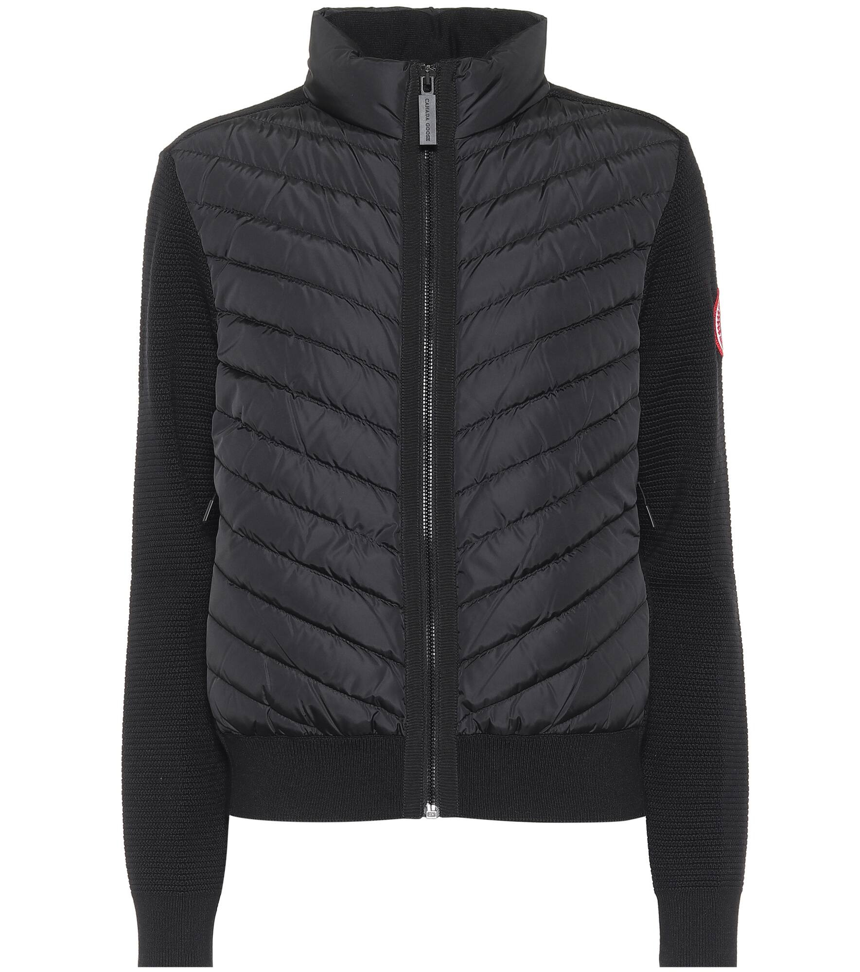 Part cozy sweater, part functional outer layer, this jacket is part of Canada Goose's performance-focused HyBridge® collection. The slim-fitting black style is filled with goose down and feathers at the quilted front, while its sleeves and reverse are finished in fine merino wool. - material: 100% merino wool - material II: 100% nylon - filling: 80% down, 20% feathers - lining: 100% polyamide, partially lined - care instructions: dry clean - zipped pockets - zipped front - Designer colour name: Black - contains non-textile parts of animal origin - True to size - Designed for a loose fit - Lightweight material - Slightly cropped - The model seen in the picture is 178cm-5'10" and wearing a size XS
