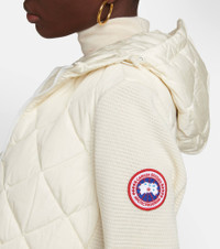 The HyBridge® hoodie from Canada Goose is knitted from wool. It has a diamond-quilted down-filled front, a drawstring hood, and a logo patch that adorns the sleeve. Product Details - Material II: 100% polyamide - Contains non-textile parts of animal origin - Drawstring hood - Designer color name: Cottongrass - Filling: 80% down, 20% feathers - Lining: 100% polyamide, partially lined - Material: 100% wool - Closure: zipped front - Care instructions: dry clean - Pockets: zipped pockets - Made in Romania - Item number: P00773256 Size & Fit - Fits small to size - we recommend trying one size larger - Canada Goose standard fit - Straight fit - Lightweight material - Falls to the hip - The model seen in the picture is 178cm-5'10" and wearing a size S