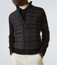 This black Canada Goose jacket is crafted from a technical shell at the body which has been filled with goose down, and features merino wool knitted sleeves for versatile wear. Product Details - Material II: 100% polyamide - Pockets: zipped pockets - Care instructions: specialist clean - Material: 100% wool (merino wool) - Designer color name: Black - Lining: fully lined, 100% polyamide - Filling: 80% down, 20% feathers - Closure: zipped front - Made in Romania - Item number: P00512083 Size & Fit - True to size - For a looser fit, we recommend taking one size up - Slim fit - Partly stretchy fabric - Falls to the hip - The model in the picture is 185cm-6'1" and wearing a size M